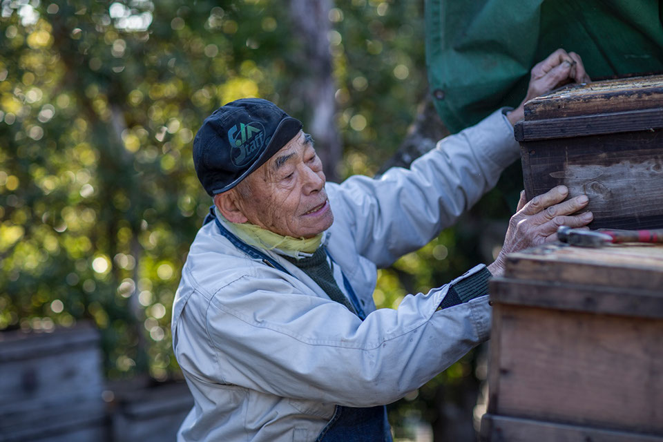 |「70歳で蜂屋は止めると言ってたんですよ。私は、遊ぶのも好きだから、70歳までは当たり前に働いて、それからは渓流釣りとか鉄砲とかをやるつもりだったんですよ。ところが67歳で膀胱ガンになって、こういうことでもやってないと、精神的に参るわ。結局、この仕事が好きだから、夢中になってるから、それで助けられたけど。この仕事してないと、色々なこと考えて頭が火になる。病気になってからは、もう15年になるな」
