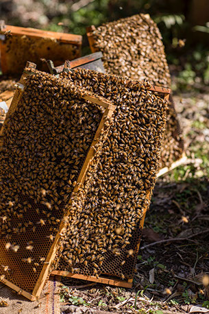 秋に溜めた蜜を越冬の間に食べ終えた群のために、蜜の詰まった別の巣板と入れ替える