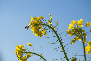 食用の菜の花が多く蕾のうちに収穫され、蜜蜂が花粉や花蜜を集めることができない。館山市塩見の畑では一度収穫した後の2番花に蜜蜂が寄る