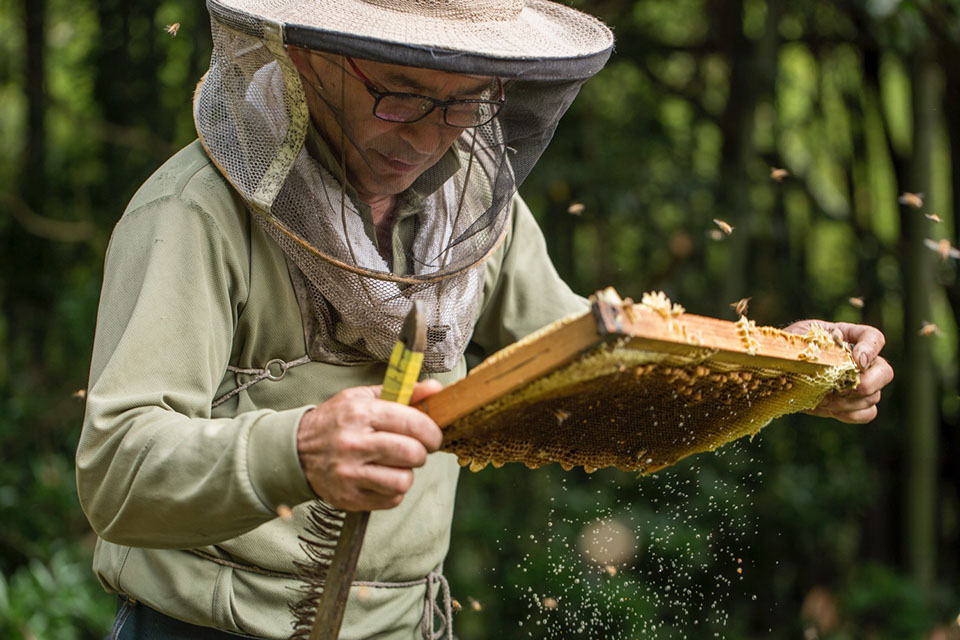 |正さんは養蜂業を始める前、高校で生物の先生をしていた。