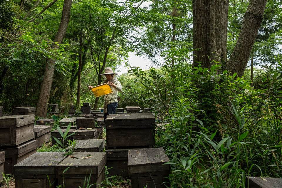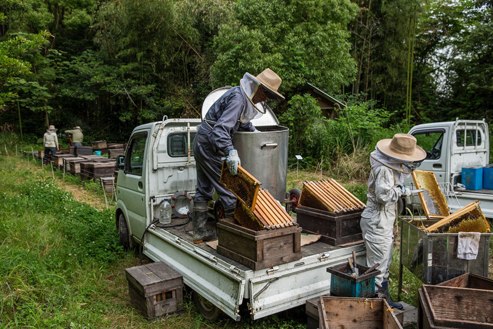 |空はどんよりとした梅雨空。6月初旬、島根県浜田市。中山農園株式会社は採蜜の最盛期を迎えていた。