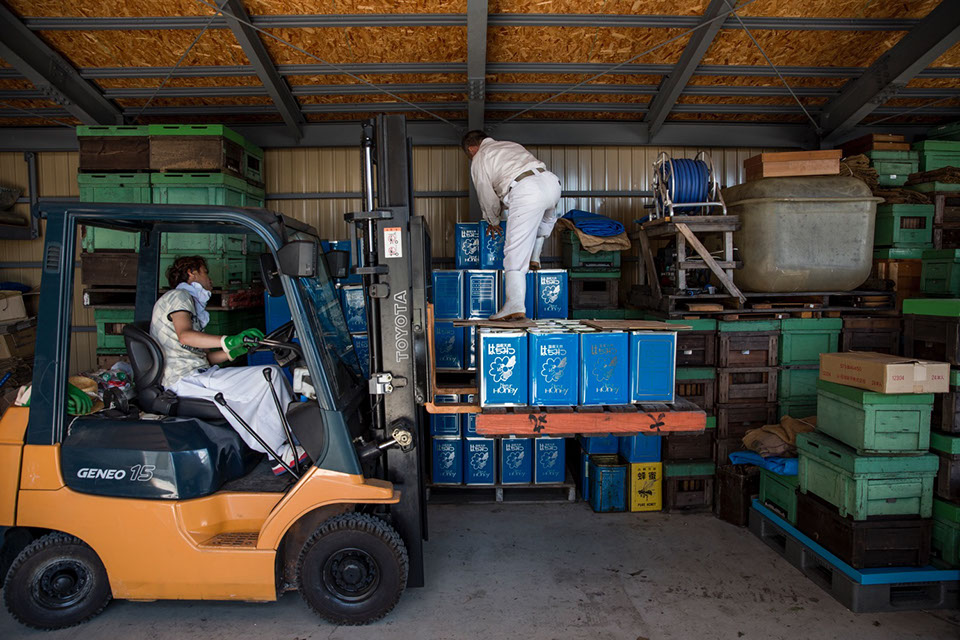 今日の仕事もまだまだ終わりそうもない。おにぎり2個とペットボトルのお茶で昼食を済ませ、次の養蜂場へ出発だ。