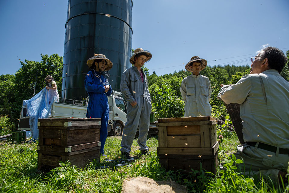 |「基本的に社長から言われるのは、『蜂を潰すな』だけですね。他の細かいことは言われないんですけど、最初の年には、シーズンになると蜂が巣箱から溢れてしまって、それをどう潰さないで収めるか、焦ったことがありました」