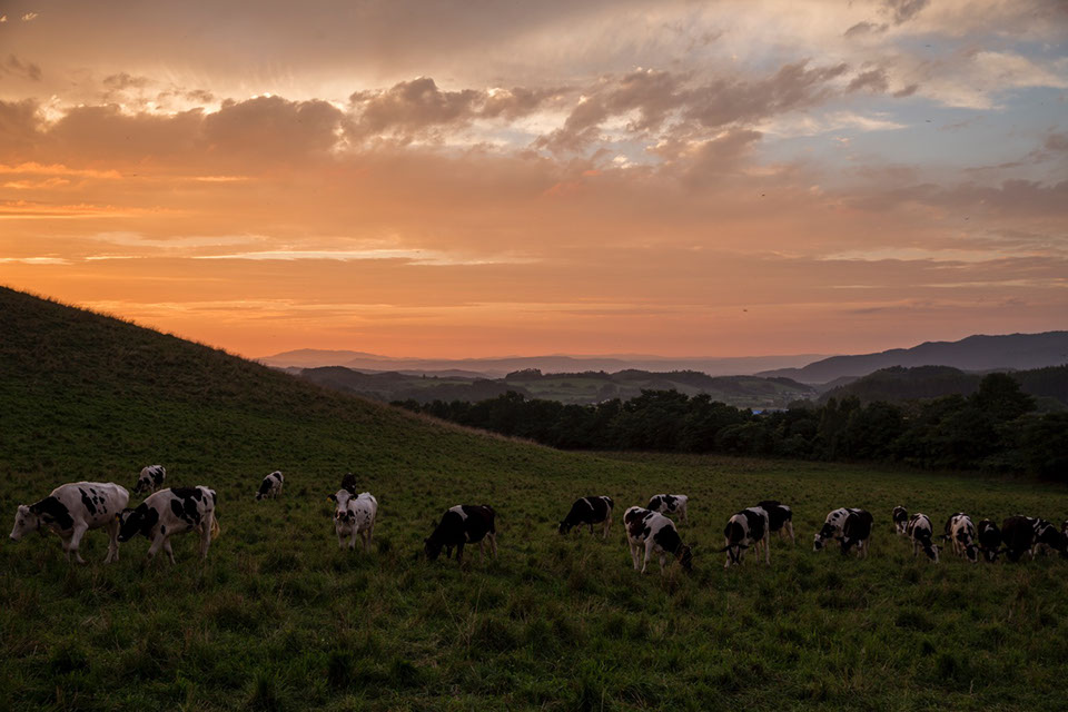 康幸さんが養蜂技術で協力している巣箱が置いてある大和牧場の夕暮れ