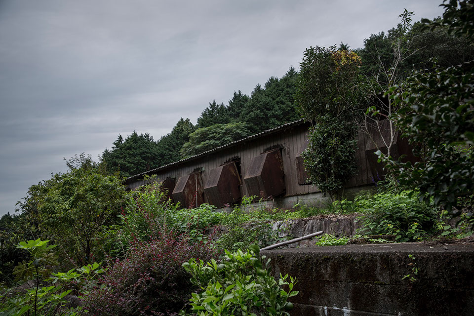 翌日、幸一さんが最初に私を案内したのは、同じ雲仙市吾妻町だが集落を離れた山中で、諫早湾締切堤の内側に流れ込む谷川沿いにある川床名牧之内だ。そこには、幸一さんの両親が養蜂をするため19年前まで暮らしていた家と未使用のままの長さ48メートルもある大きな豚舎が建っていた。