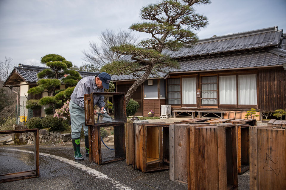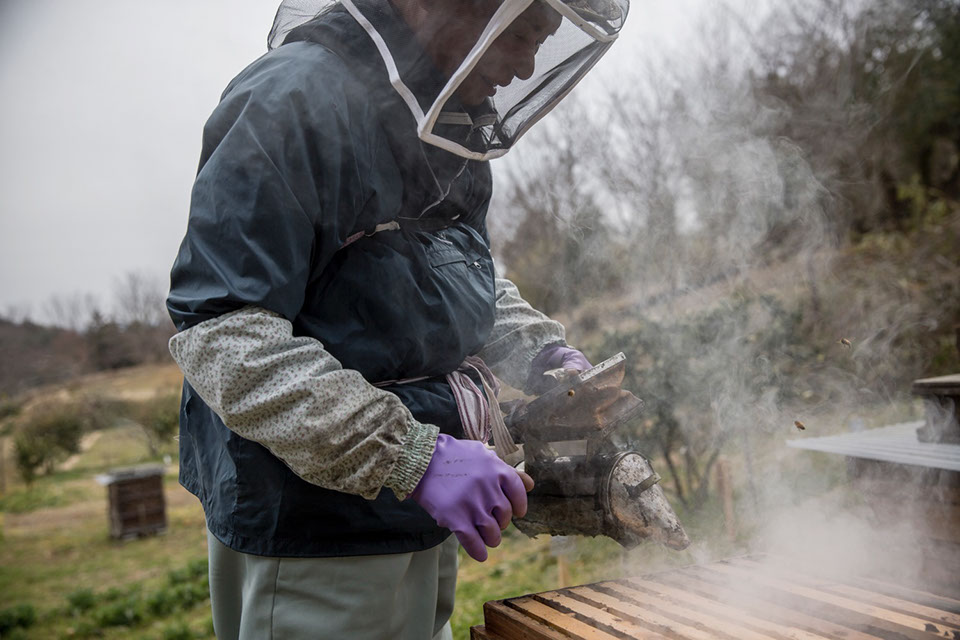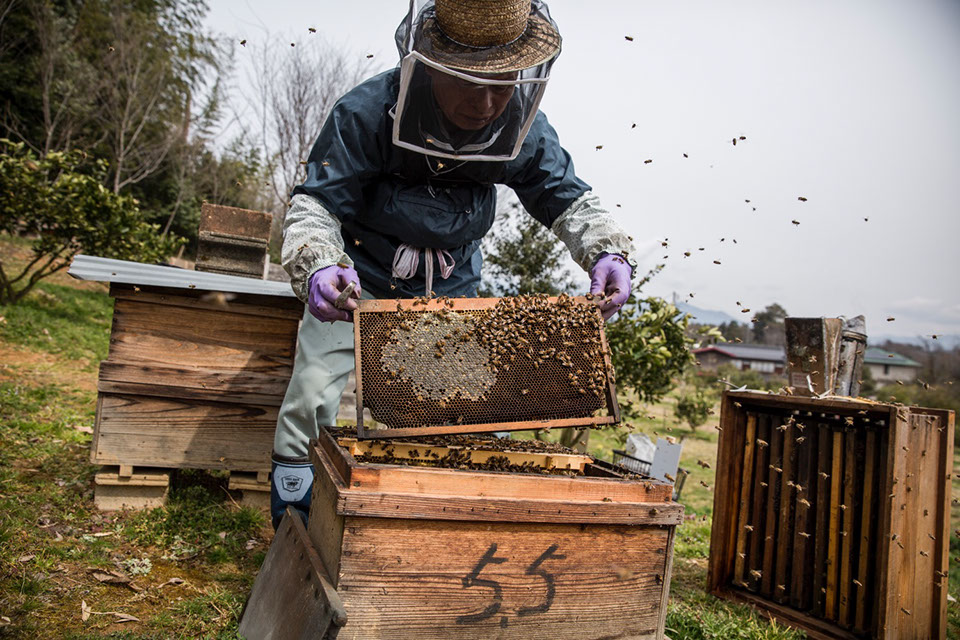 「養蜂は近所に迷惑を掛けるけんな。近所は大事やけんな。近所の協力がないと、こりゃでけんけんな」と哲さん。物心付いた時から知っている幼馴染みの近所付き合いだからこその細やかな心づかいだ。