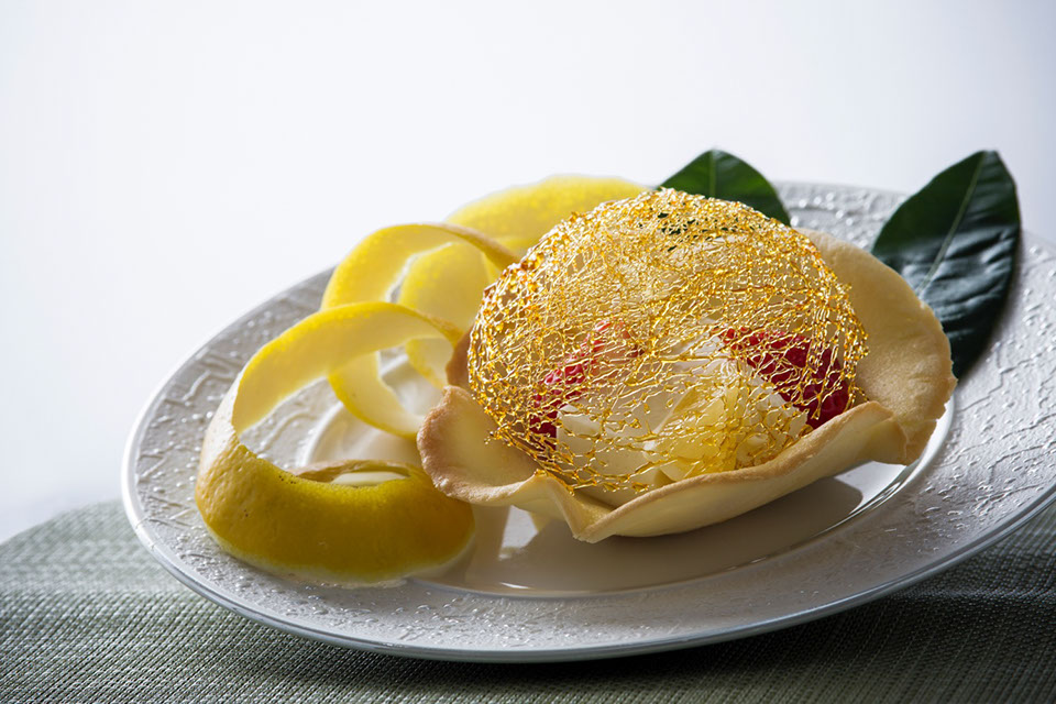 吉岡良祐シェフの「クリームチーズの蜂蜜ムース・タンバルエリゼ」