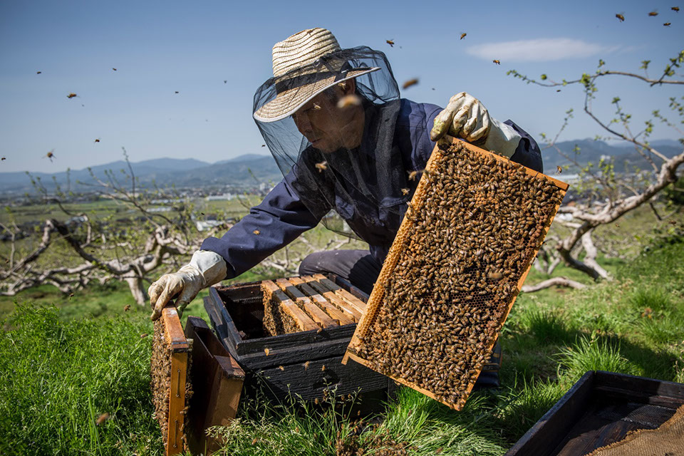 「6月の始めに採蜜のために北海道へ移動するんですけど、その前にメロンの交配用蜜蜂を作って送り出しとかないかんのです。それに、地元の農家へ貸し出す柿の交配用蜜蜂も準備しないと。でも、今年は天気がおかしくてですね。まだ蜂の増え方が遅いんです」