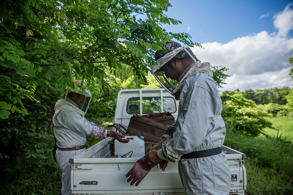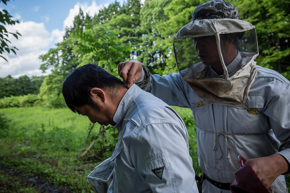 この日、武和さん兄弟が内検を終えた時は、午後6時近くになっていた。面布を被ってはいるが、目の前で羽音を立てて蜜蜂が飛び交う中で作業するのは気持ちの休まる暇がない。自然の中での仕事だからこそ天候に左右され、自然と共に生きる蜜蜂の生態リズムは待ったなしである。わずか半日ほどだったが武和さんの働きぶりを拝見して養蜂家の仕事の大変さを垣間見たように思えた。