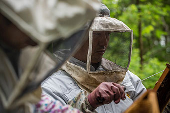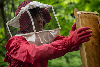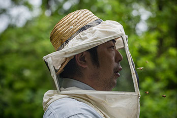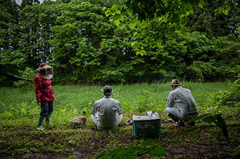 面布を被っていても羽音の中で休みなく作業をするのは緊張を強いられる。武和さんが作業の合間でふっと放心したような表情を見せた