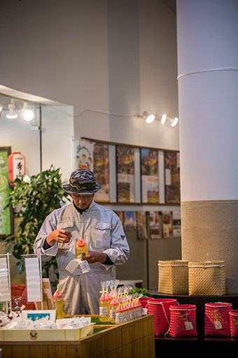 この日、武和さんは「道の駅なかせん」に併設されている「こめこめプラザ」に出荷した後、喜内野蜂場と栗沢蜂場の内検を行った。