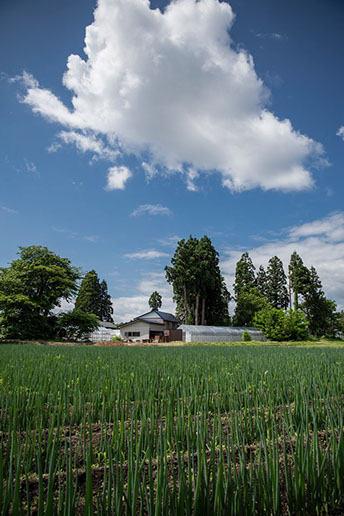 武和さんが「うちの主力作物」と言うネギ畑の奥に、スギに囲まれた傳農家がある