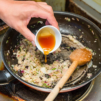 ⑦ 炒めた詰め物に蜂蜜を加える