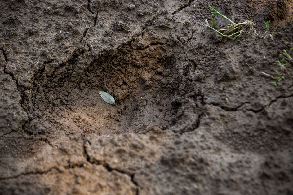 花館蜂場の近くの畑に残っていた直径15センチほどの熊の足跡。地主さんは「子熊だ」と言う