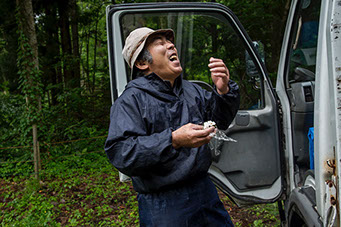 この日、約束の時間は午前4時。武家屋敷で知られる角館市街地の外れにある団地のご自宅を訪ねると、薄らと姿が見えるほどの闇の中で芳行さんが両掌を上に向け、「どうすっかな」と空を見上げている。小雨が降っているのだ。