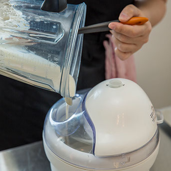 ⑦ 攪拌した材料をアイスクリームメーカーに