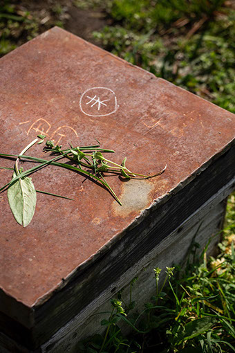 内検で気になることがあると草を千切って置く