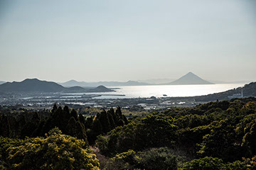 越冬のために蜂群を置いてある南さつま市坊津町の高台から薩摩富士と呼ばれる開聞岳が望める