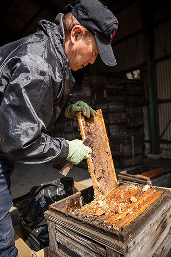 「養蜂家というのは、冬の花のない時期に餌を与えて養ってやって、花が咲き始めて蜜源が自然にあるようになると、蜂が子を産み始めて、蜜を溜め始めますよね。そうすると蜜の消費も多くなりますけど、それ以上に沢山の蜜を溜めます。採蜜は、その余った分を貰っとるのであって、蜂が必要としている分まで取ってしまえば、蜂が育ってくれんですもん」