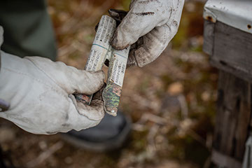 一俊さんが行っている養蜂は、通常より高い到達点を目指す養蜂なのだ。餌は単なる砂糖水ではなく異性化糖で、おまけに栄養補助食品を加えている。さらに乳酸菌入りの混合飼料を与えているのだから、こだわりが伝わる。人間の食事で言えば、通常の食事の栄養価を高めた上にサプリメントで強化している感じだ。