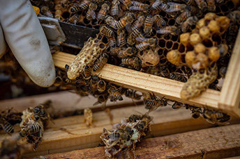 ポリネーションに貸し出している間に蜂蜜を溜めるほどの勢力がある群であることは好ましいが、蜜がたくさん溜まると新しい女王蜂を誕生させ、古い女王蜂が群を引き連れて分封しようとするので、貸出期間が長くなると分封が心配になるのだと言う。
