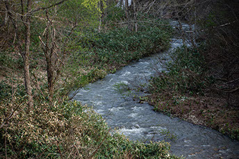 堂ノ上蜂場のすぐ下を雪解け水が流れる