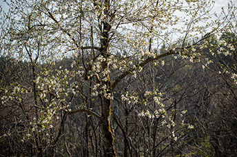 堂ノ上蜂場の傍らでコブシが満開の花を付けていた