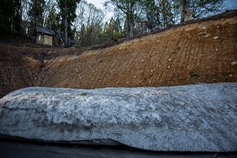 安士養蜂園の作業所の片隅に残っていた雪の塊