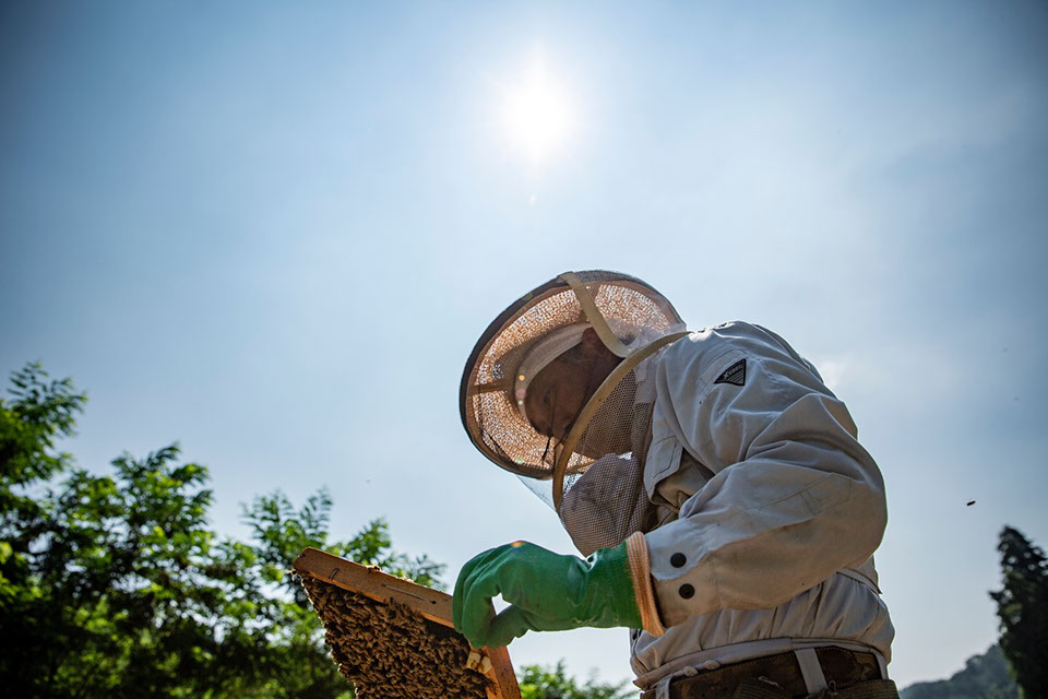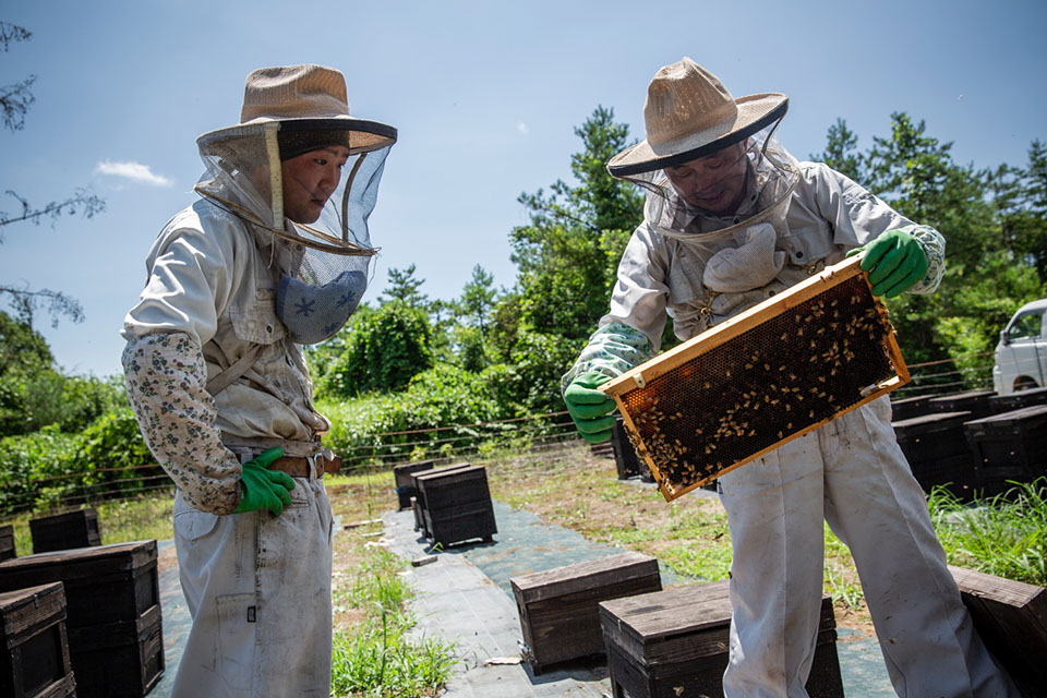 「この仕事だけは好きじゃないとできないですよ。儲かるからやるじゃ逆に財産を無くしてしまいますよ」と言う光栄さんの言葉に呼応しているのが、祐太さんが何気なく口にした言葉だ。「蜜蜂って生き物じゃないですか。生き物って、すごい素直じゃないですか」。蜜蜂の健気な素直さに感動する心こそが、蜜蜂と接する時の「基本の基」だと、祐太さんはとっくに感じ取っていたのだ。
