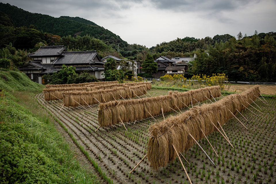 稲刈りが終わり静かな季節を迎えた草場集落の一番上に楢﨑養蜂園はある