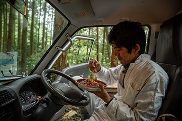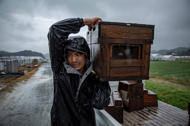 取材の最終日は朝から冷たい雨が降っていた。それでも交配用蜜蜂の配達に行くという。