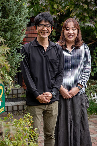 謙竜さんと妻の良子さん。楢﨑養蜂園の蜂蜜を販売している