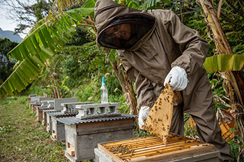しかし、何と言っても養蜂のクライマックスは採蜜だ。太さんと律さんは、昨年、初めての採蜜を経験したばかりだが、その時の感激は忘れられないと言う。