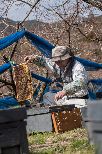 「同じ生命あるものとして、極力やさしく触ってあげたいと思って。蜂は刺したら死んでしまうので、命を懸けて刺したっていうことは、その蜂に対して手荒なことをしたから刺されたのですよね。手袋をしてしまえば躊躇なく触れるけど、蜂に対してのやさしさも無くなってしまいますよ。例えば、梅の交配用に貸し出した蜜蜂が寒くて飛ばないからといって、農家の人が、巣箱を蹴飛ばしたりしたら、花の時期が終わって帰って来た蜂は気が荒いですよ。蓋を開けただけで怒ってるんですよ。丁寧に扱ってくれた農家の蜂は、怒らないし刺してもこないです」