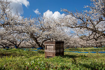 一本の母樹から接ぎ木で増やした南高梅は、自家受粉できない。そのため蜜蜂の交配に頼るか、古城梅や小梅などの品種の異なる梅を近くに植えて交配させるしかない。南高梅の豊作不作は、蜜蜂の働きに掛かっているとも言えるのだ。この春、交配用に貸し出しを予定していた悌さんの蜜蜂320箱は、ほとんどが農家に引き取られて行ったが、低温が続いたため開花の時期が遅れている。