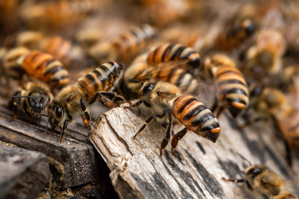 「夏になるとアリがすごいんですよ。台風の後なんか、巣箱の周りが真っ黒になるほどのアリが蜜を奪いに襲ってくるんです。蜜房を侵略して、巣板が5枚6枚の群は全滅させられてしまうんですよ」