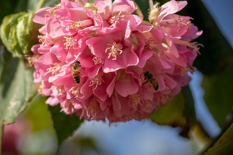 三浦さんに屋我地島と山原の森で採れる蜂蜜の種類を聞くと、ツバキ、サクラ、ピンクボール、菜の花、ツワブキ、センダングサ、フカノキなどの蜜が採れるのだと言う。