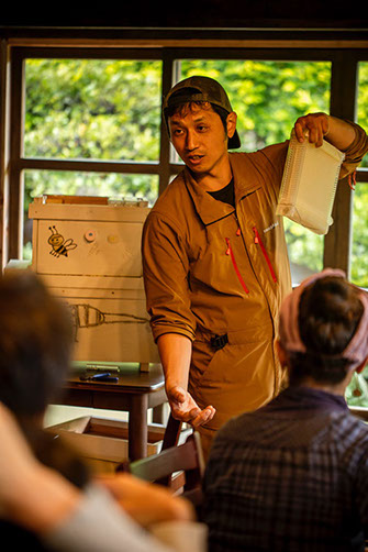 「一番の理想は、地元で採れた蜜は地元で消費して欲しいですね。安い、美味しいは、そのための必要条件だと思っています。養蜂で食っていくと決心して、どうやって食っていくか。僕が選んだのは蜂蜜だったんですね。薬(ダニ剤)を使わず、肥料(砂糖水)も使わず。ほとんどの場合私が『こうなったらいいな』と考えていることを自然の方が超えてきますね。今年の蜜は特に良かったんですよ。気象会社で働いていた時よりも、今の方が自然の変化に関心を持っていますね。知れば知るほど蜜蜂を通して自然の不思議と魅力とを感じるようになって抜けられなくなりました」