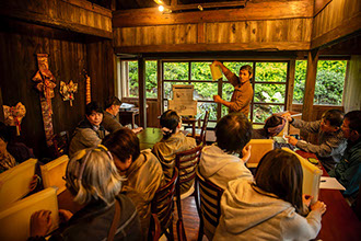 「去年の8月なんですよ。国頭村(くにがみそん)の安田(あだ)のシヌグという民俗行事に初めて参加させてもらったんですけど、裸になってガンシナーという藁でできた輪を頭に巻いて山の中へ入るんです。山でシダや蔓を体に巻き付けて小枝を持って『エーヘーホーイ』と言いながら山を降りるんですね。悪霊を連れて海へ出て海へ祈り、振り向いて山へ祈るんです。その時に何とも言えない幸福感を感じてカーッときて自然と涙が出てきましたね。自然に感謝するというのはこういうことなのかという実感がありました」