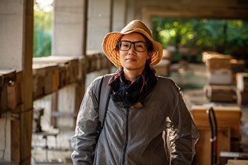 加工場を設置した土地の大家の大城毅さんが自分の畑で