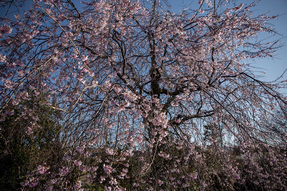 荒川河川敷の蜂場近くでしだれ桜が満開の花を付けていた