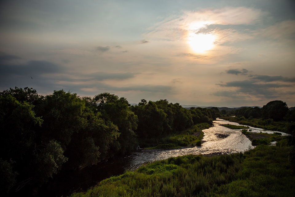 村上養蜂の自宅近くを流れる常呂川の夕暮れ。康裕さんは採蜜が終わればこの川でルアー釣りをするのを楽しみにしている