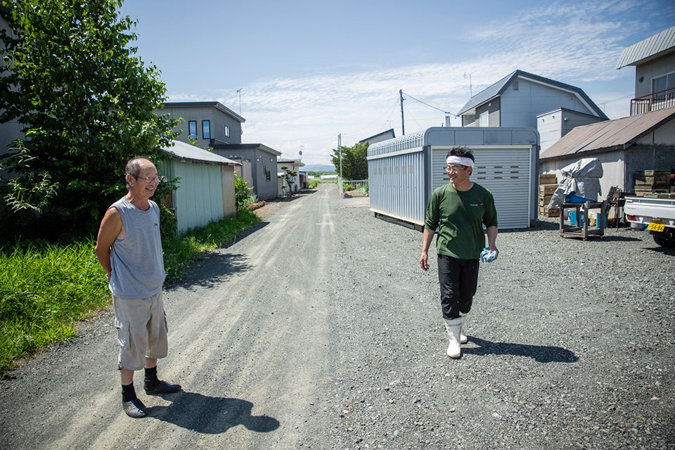 1年のうち夏の間しか訓子府町には滞在しないが、渓流釣りが共通の趣味の道路向かいの石井進さんが顔を見せて立ち話が始まる
