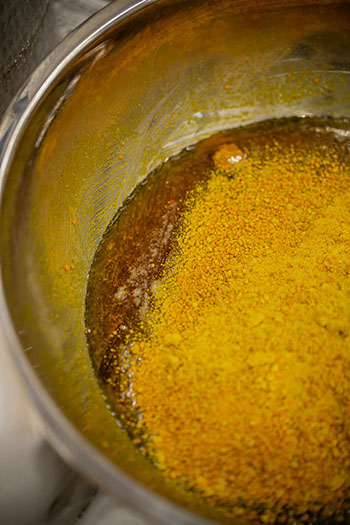 蜂蜜と花粉を混ぜて自家製の餌を作る