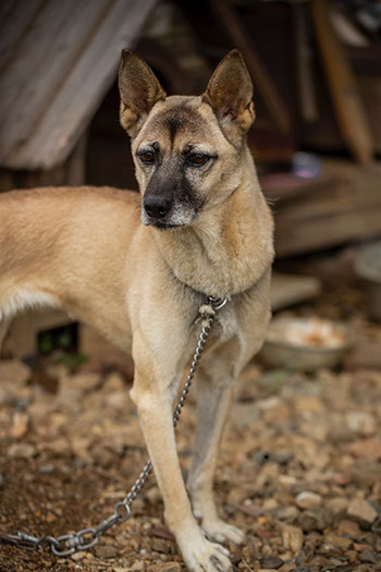 名古屋コーチンに囲まれた政夫さんを初秋の夕陽が照らし出している。