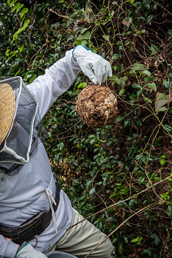 依頼があればスズメバチの巣を撤去するのも養蜂家の仕事だ