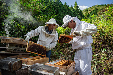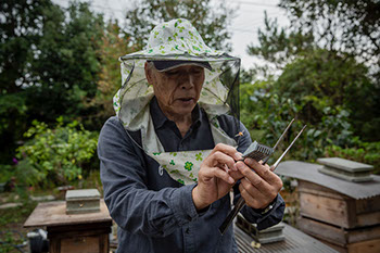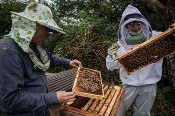 達彦さんは「蜜蜂が餌を食べているところを見たら、結構可愛いですよ」と、蜜蜂には親しみ感じているようだし、養蜂を始めて一年経っての感想を聞くと、「増えれば増えるんだなあというのが、今年の印象」と、蜜蜂の生命力と神秘に前向きな反応で応えてくれた。養蜂家としての将来はどうなのだろうか。卓美さんに聞くと……。