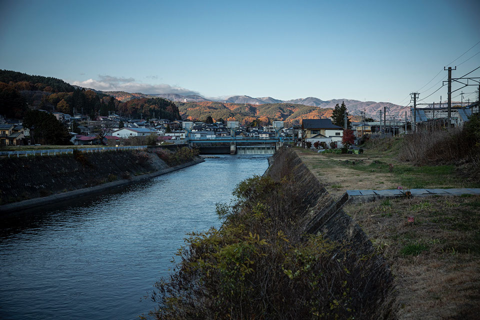 夕暮れ時の天竜川。画面奥が上流で水源の諏訪湖に続く