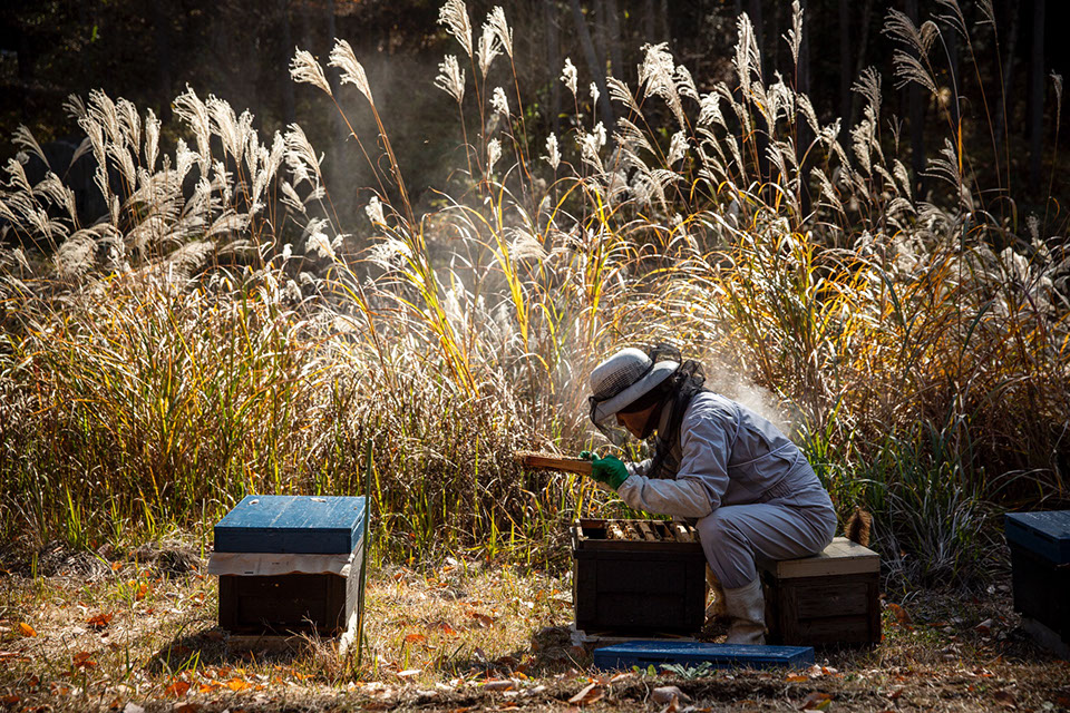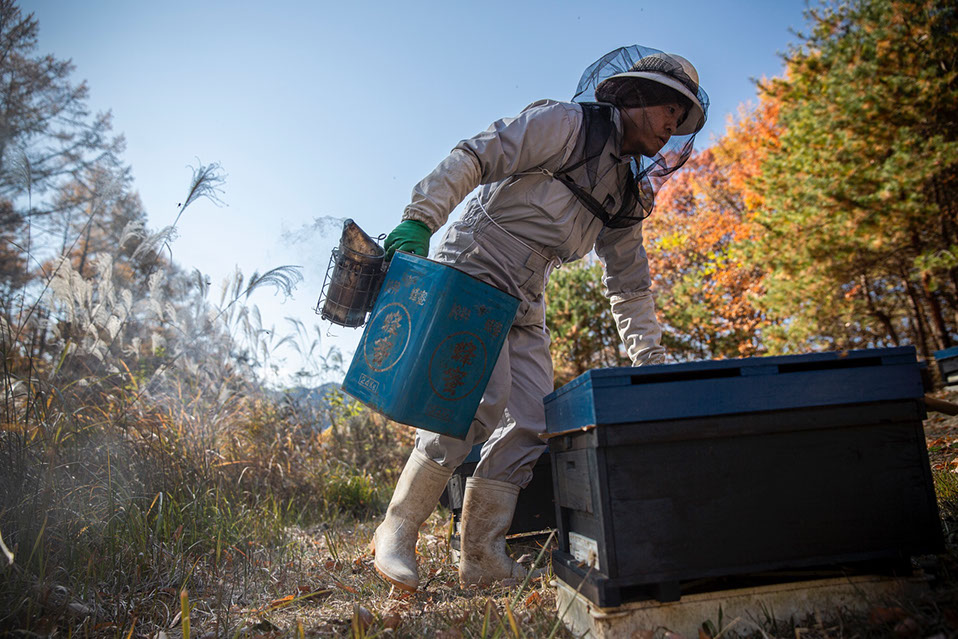 「2年前に刺されて、呼吸が苦しくなっちゃって、鼻水が出て、血圧も下がっちゃって。蜜蜂でもアナフィラキシーは出るから、蜂も命がけだし、命に付いて考えましたね。『苦しいんだけど』と言われた時は……、あの時はあせっちゃったですね。蜂にはありがとうという感謝の気持ちを持たなきゃいけないなと思っているんですけどね」と康さんが、薫さんを労るように教えてくれた。