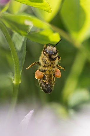 花粉を団子状にして両脚に吊り下げて持ち帰る